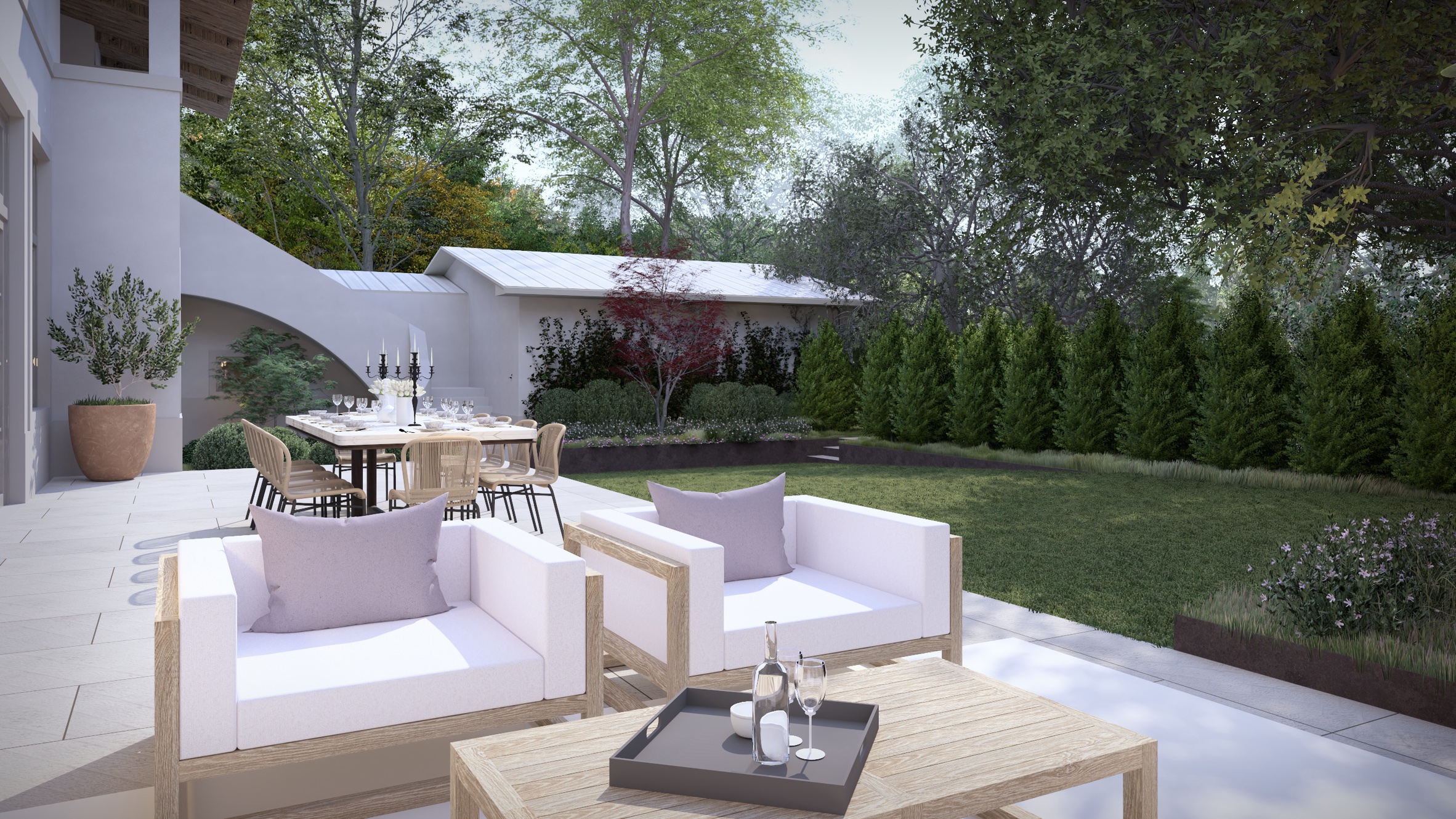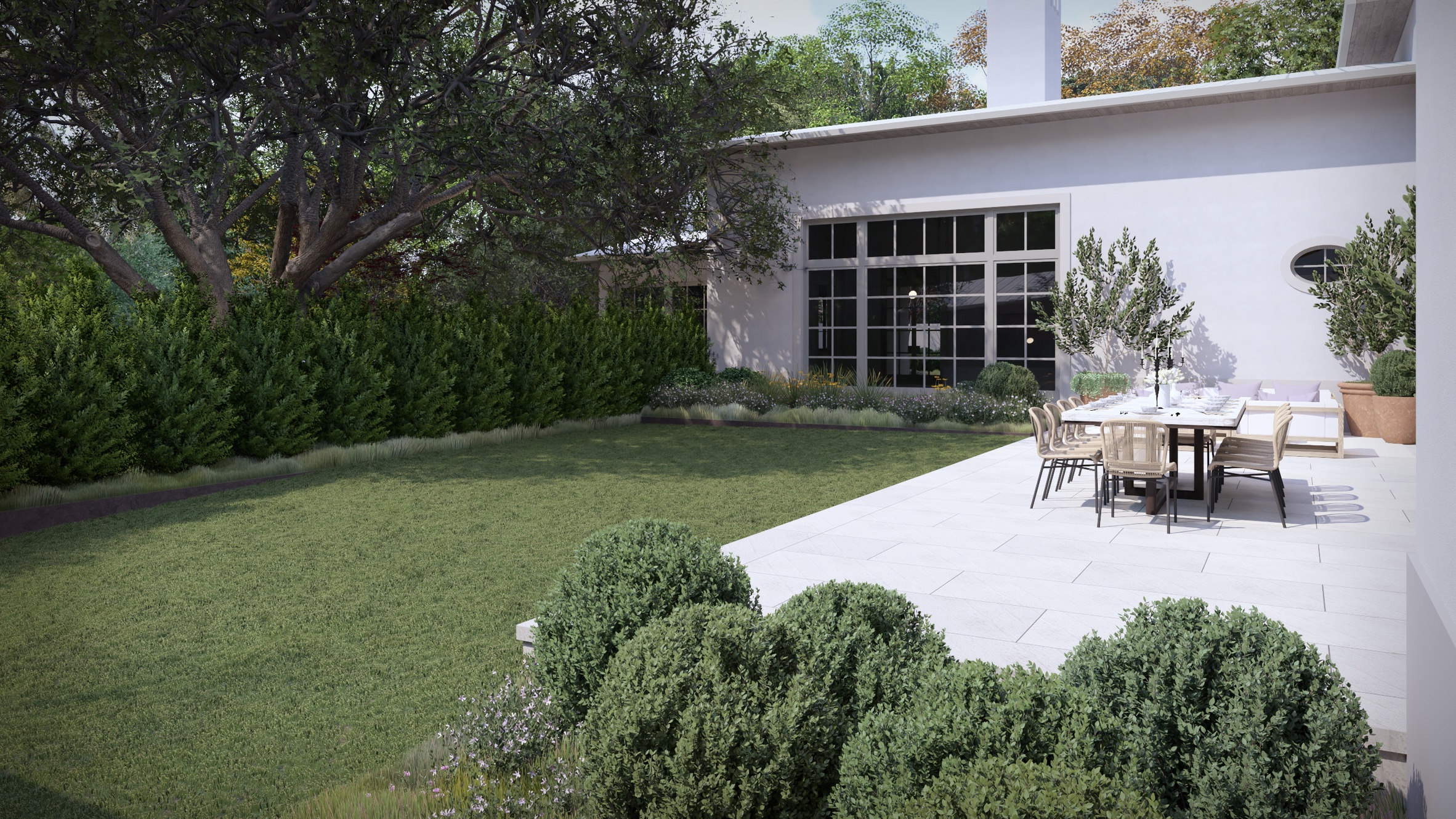 A newly conceived arrival sequence sets the tone: a private, courtyard-style entrance framed by curated landscaping creates a sense of retreat and discretion before one ever steps inside. The garage has been repositioned to enhance both privacy and architectural symmetry, while the grounds have been sculpted into a lush, resort-caliber oasis.