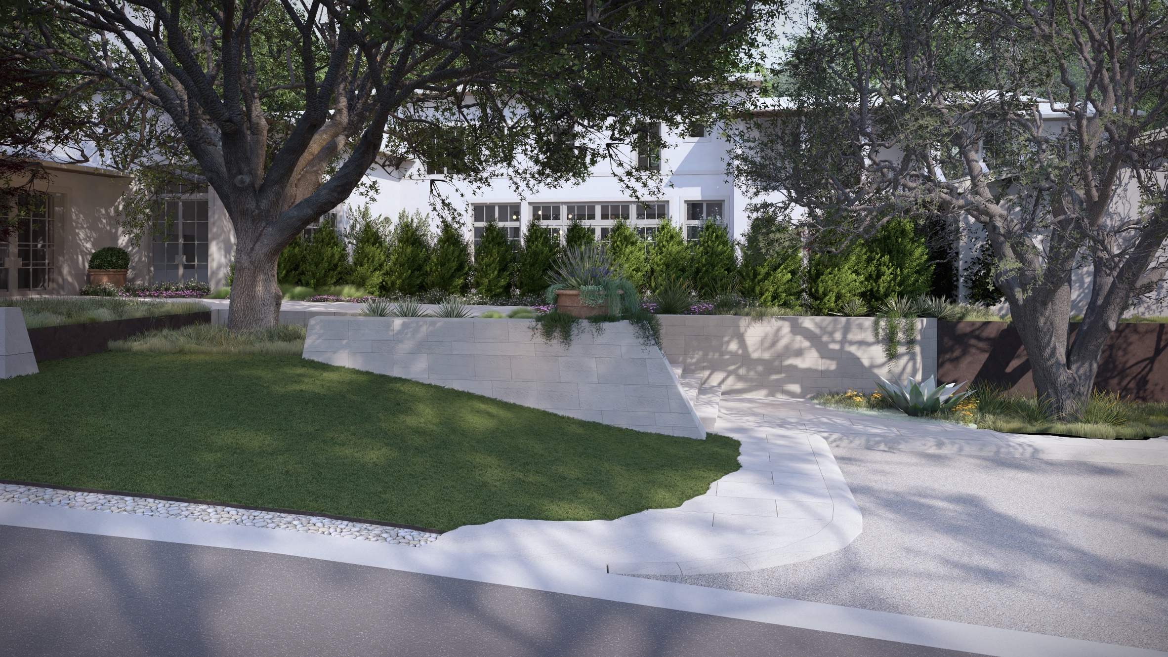 A newly conceived arrival sequence sets the tone: a private, courtyard-style entrance framed by curated landscaping creates a sense of retreat and discretion before one ever steps inside. The garage has been repositioned to enhance both privacy and architectural symmetry, while the grounds have been sculpted into a lush, resort-caliber oasis.